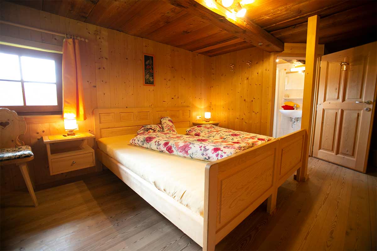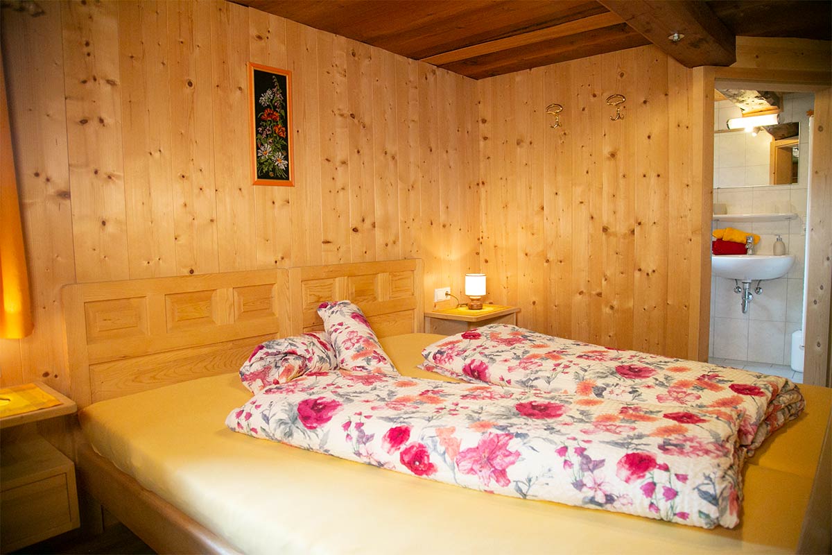 Das Doppelbettzimmer besteht aus Fichtenholz.